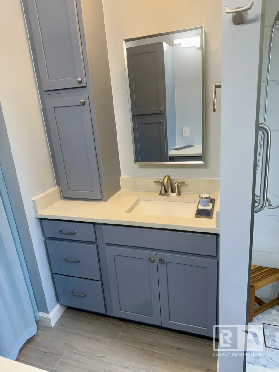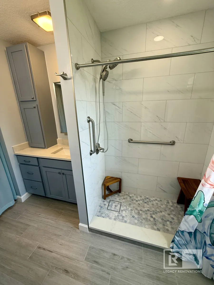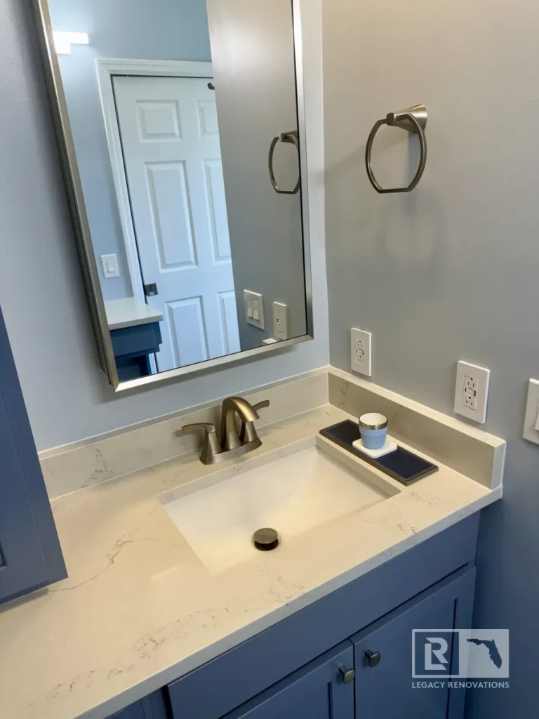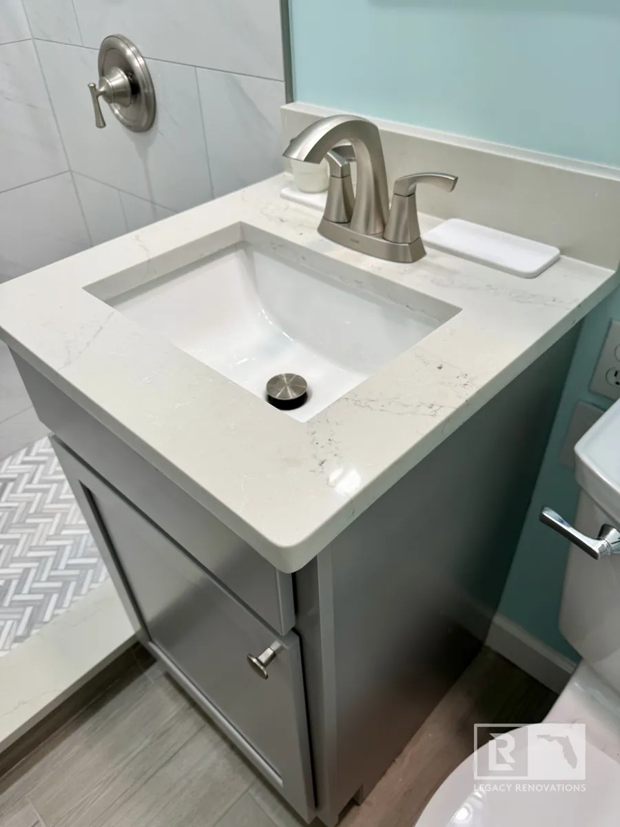 For this beachside home, our team at Legacy Renovations transformed two bathrooms — and this guest bathroom was one of the highlights.