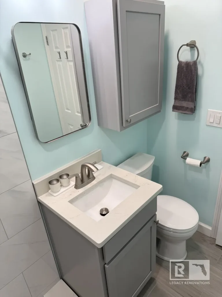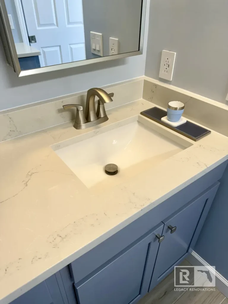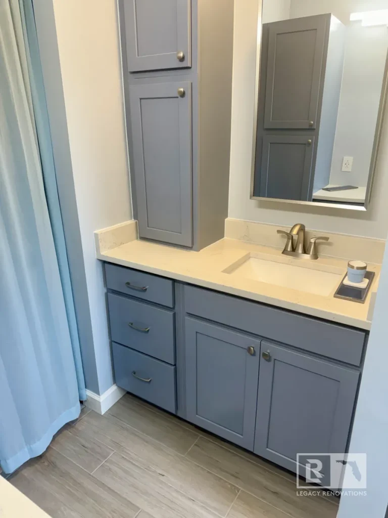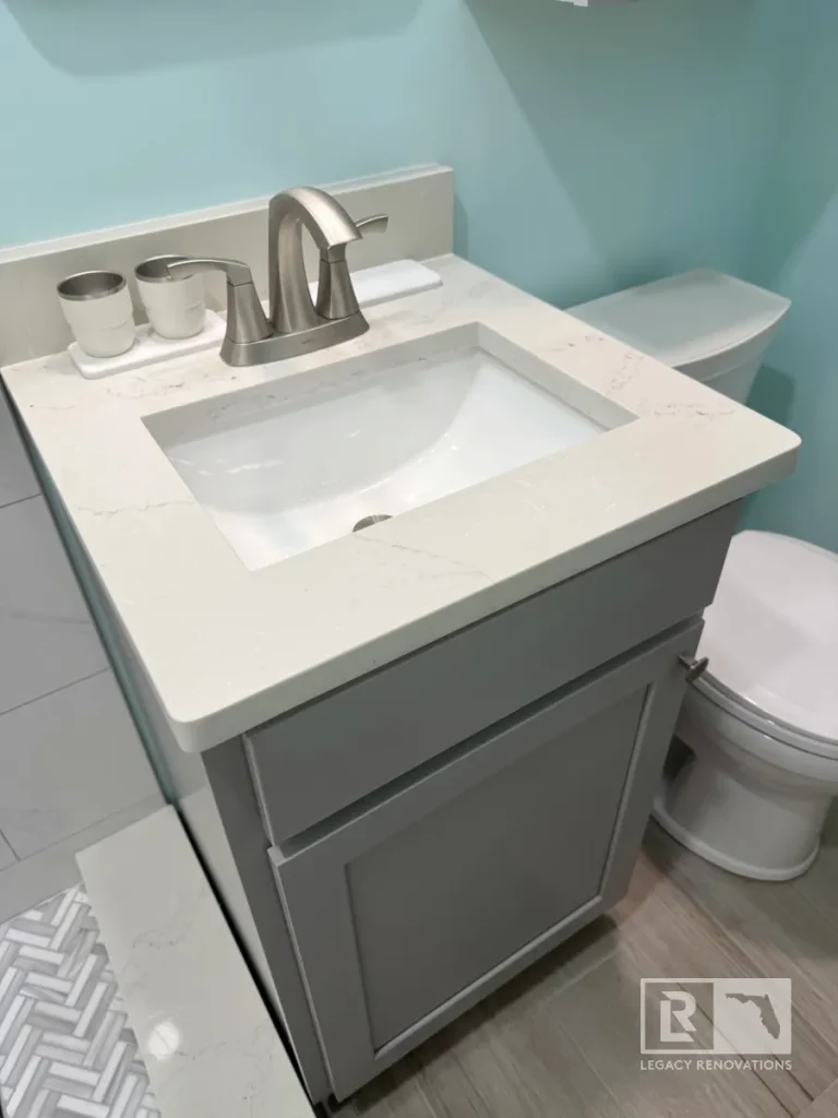 For this beachside home, our team at Legacy Renovations transformed two bathrooms — and this guest bathroom was one of the highlights.