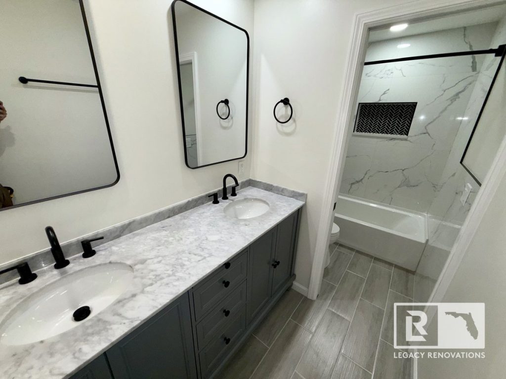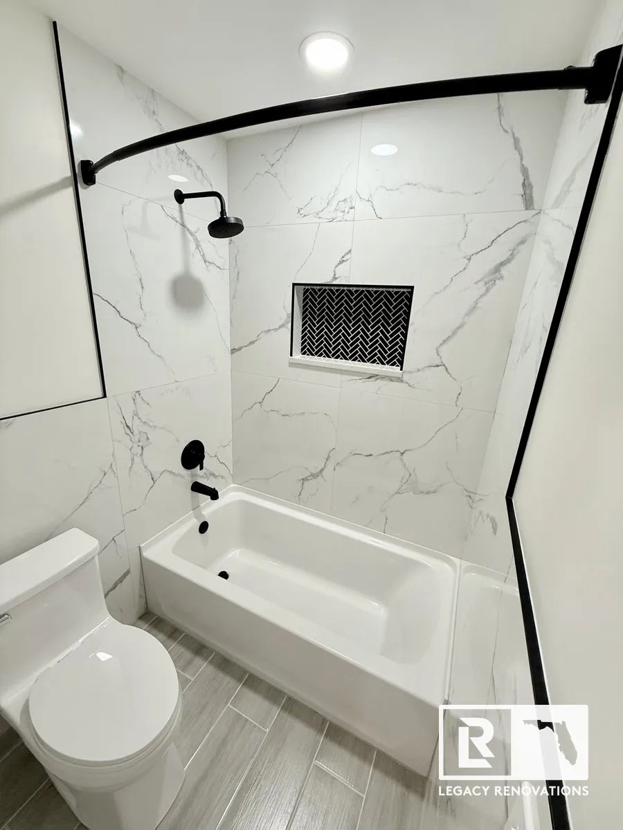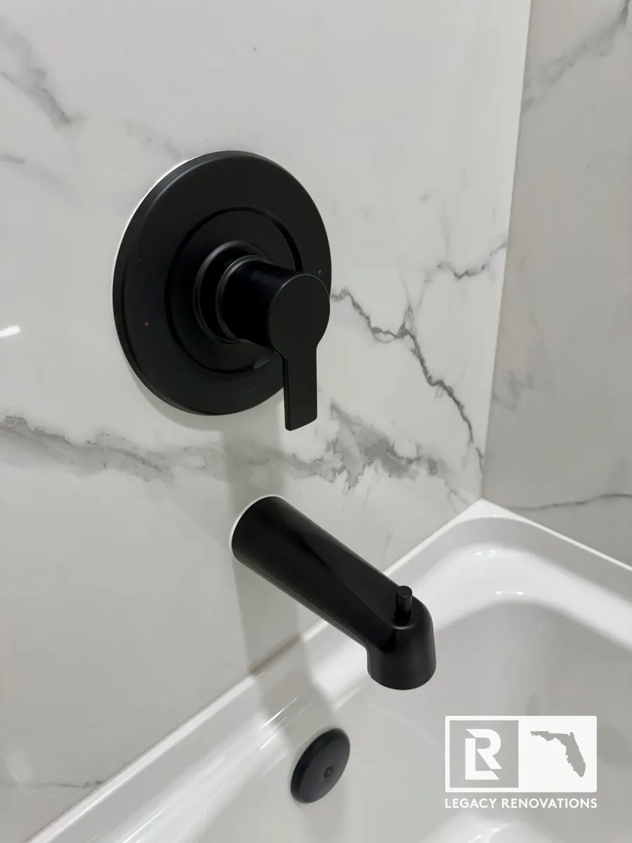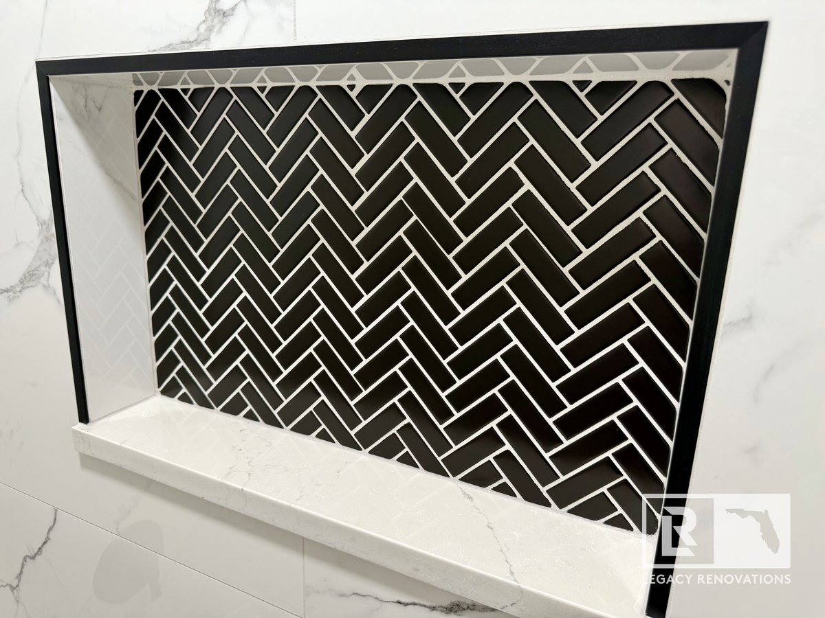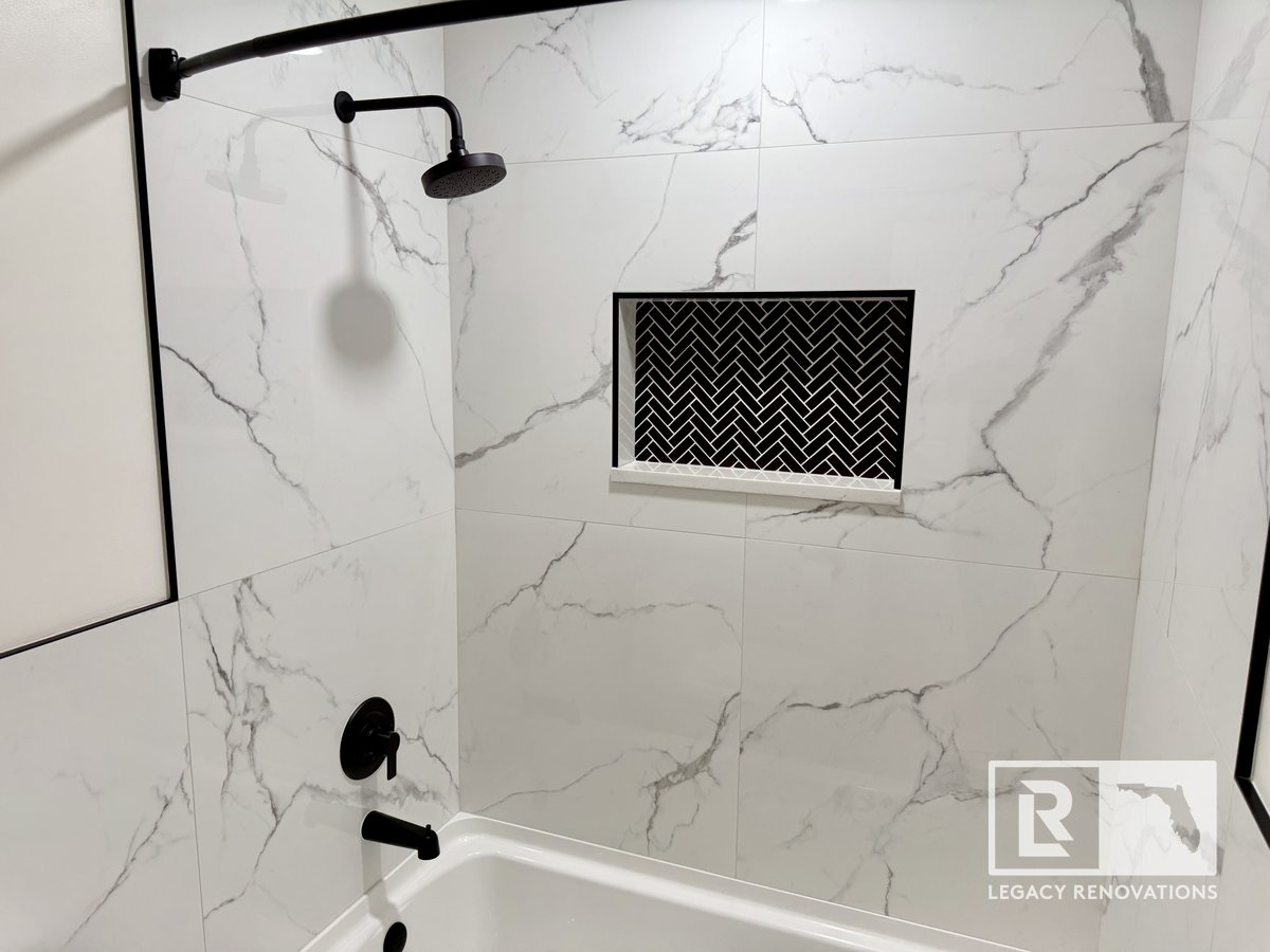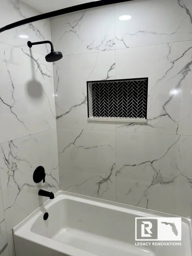 The shower features black accents and large-format tile that really make the space stand out. If you ever have concerns about a contractor’s work, feel free to reach out—we’re happy to help however you’re most comfortable.