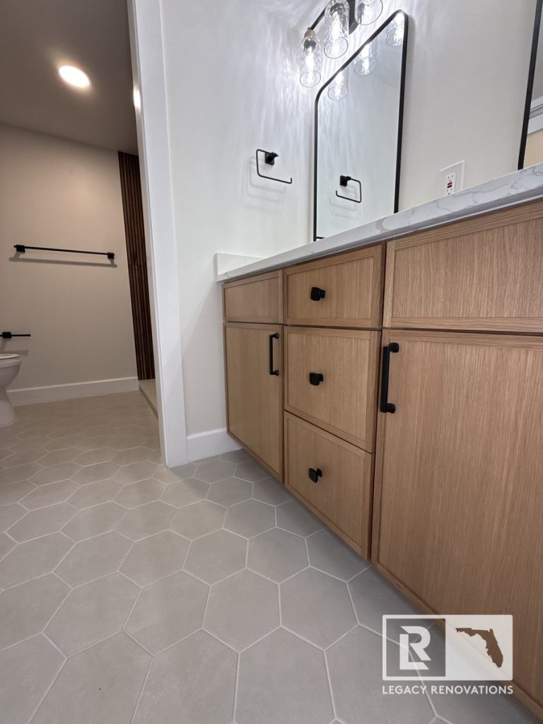 This beach bathroom was a really fun project with an interesting backstory. Another contractor had already pulled the permit and was about halfway through when the owners realized the quality of work didn’t match what they were paying for. They called us, we came out, submitted a bid, and took over both the permit and the entire project — finishing it exactly the way they envisioned.