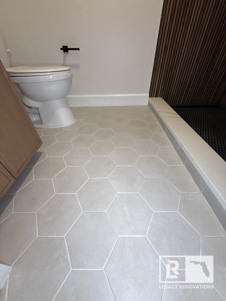 It came out beautiful. We were able to use many of the materials the previous contractor had already sourced, and filled in the gaps — additional tile and a few other items — where supplies had fallen short. The client is extremely happy with how it turned out.