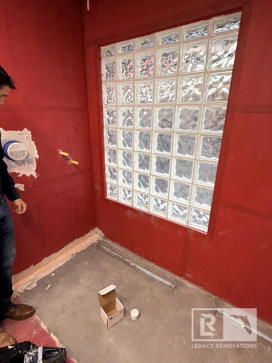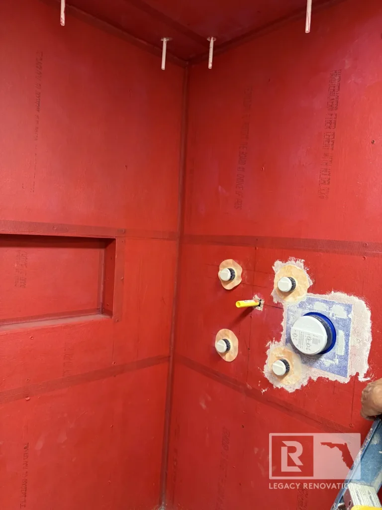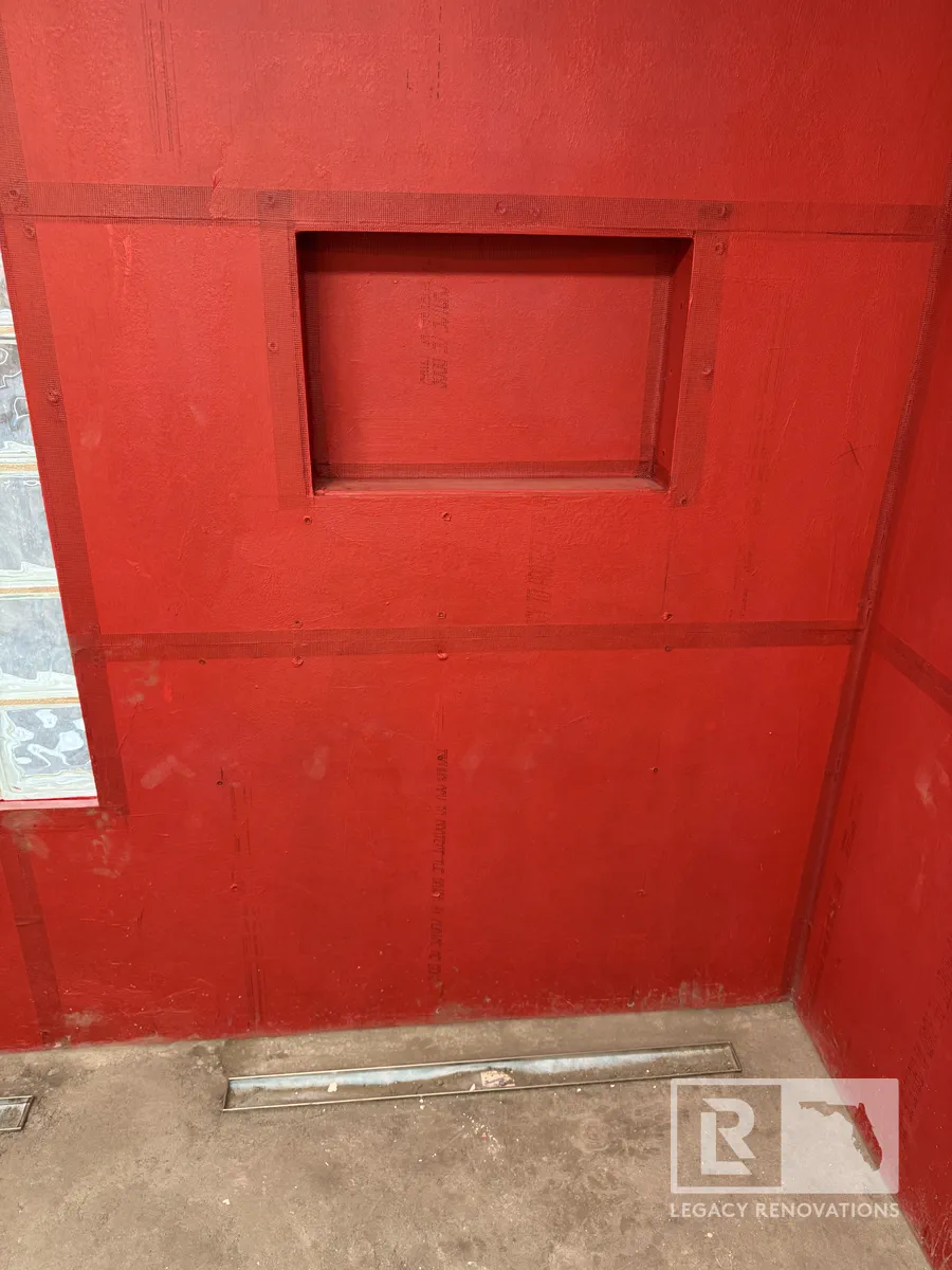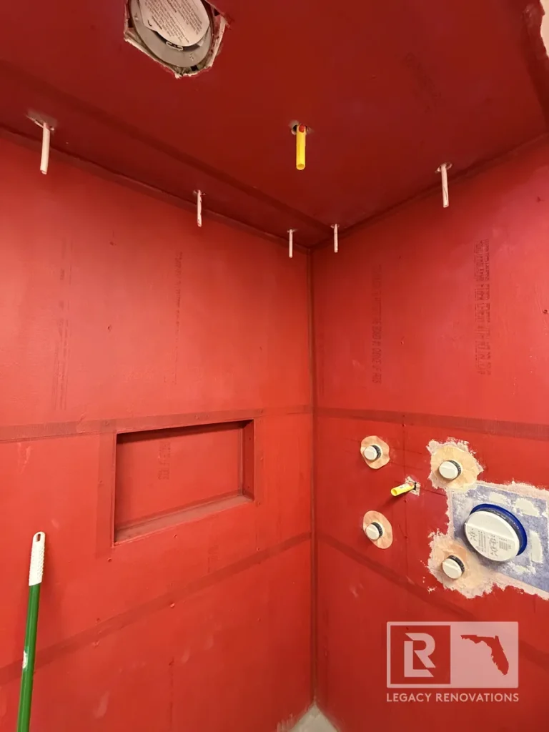 After we are finished red guarding, we’ll tile right over the top of it.