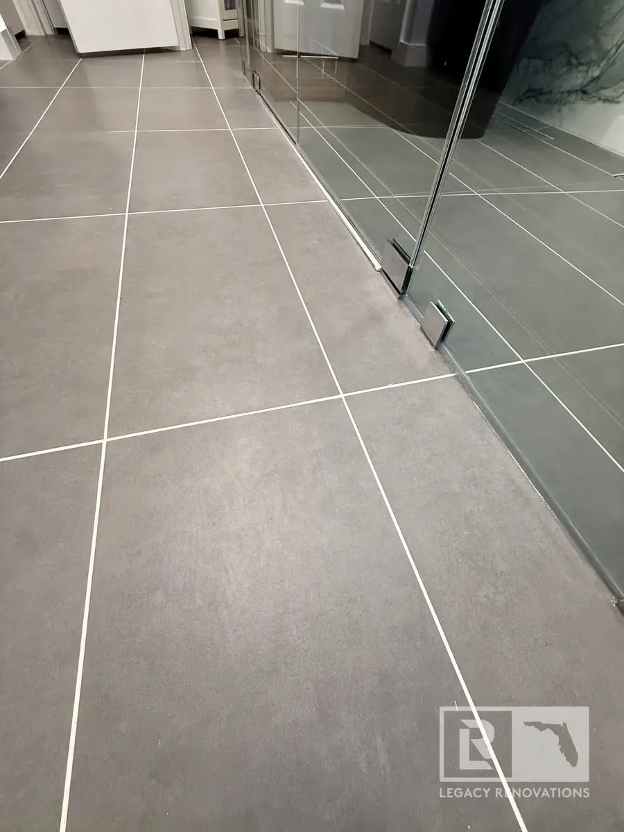 We’ve got the large tiles, and when we lay these larger tiles out we really try and blend the grains so that it looks like it’s all tied together.