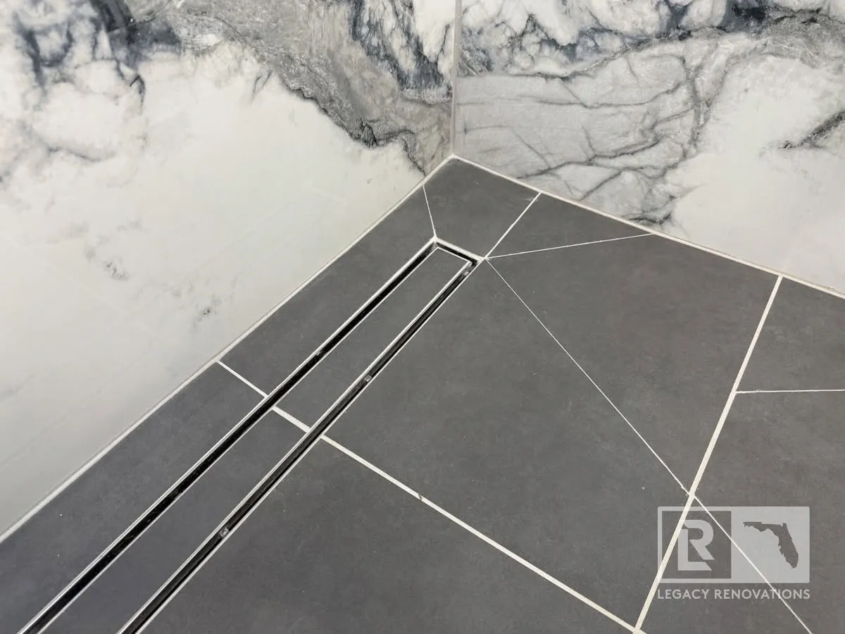 And then right as the shower started, we beveled it just a little bit to get the linear slope that we needed down to those linear drains.