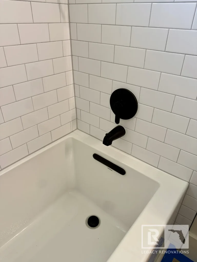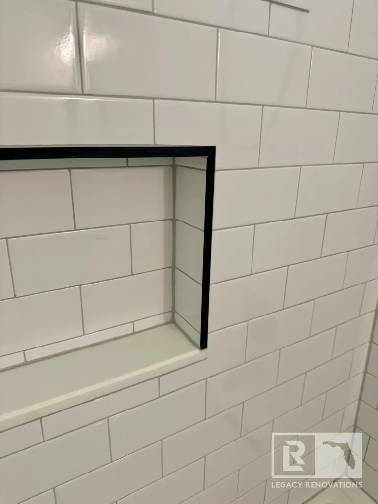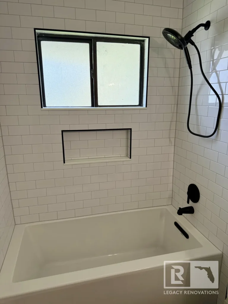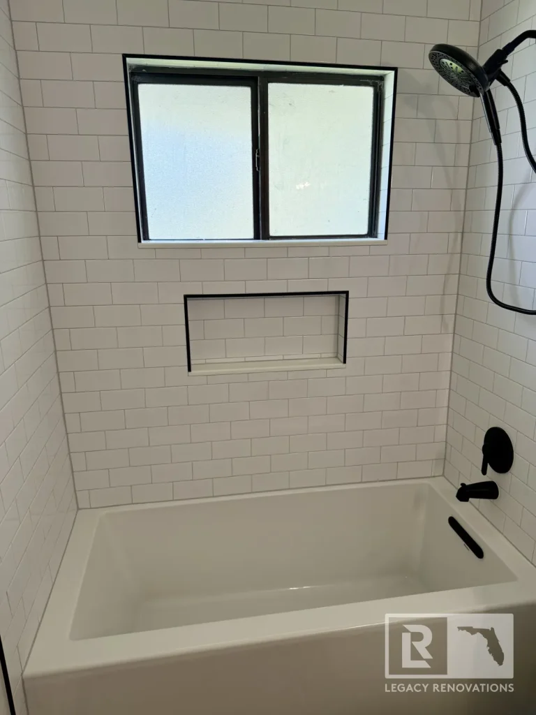 At Legacy Renovations, we recently completed a stylish bathroom update in the Indian Springs neighborhood. Rather than a full gut renovation, the focus was on enhancing the tub area and surrounding tile walls. We took everything down to the studs and applied our trusted waterproofing process to ensure long-lasting durability and protection.