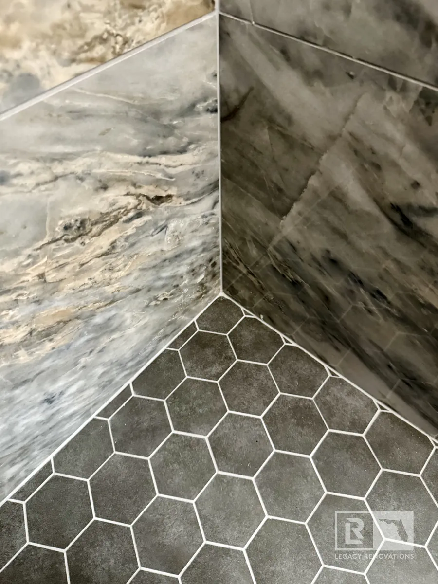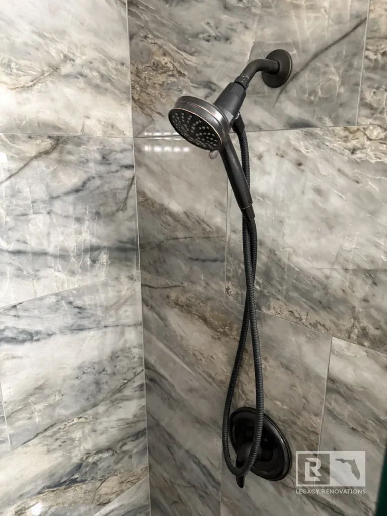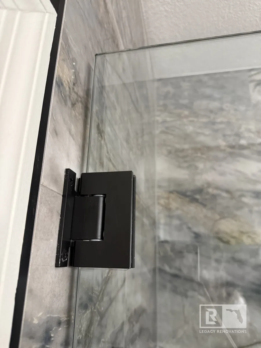 High-quality materials were used throughout the build, including 3/8-inch thick premium glass and heavy-duty brackets for durability and long-lasting performance. The final result is a beautiful, timeless guest shower that reflects our commitment to craftsmanship and quality at Legacy Renovations.